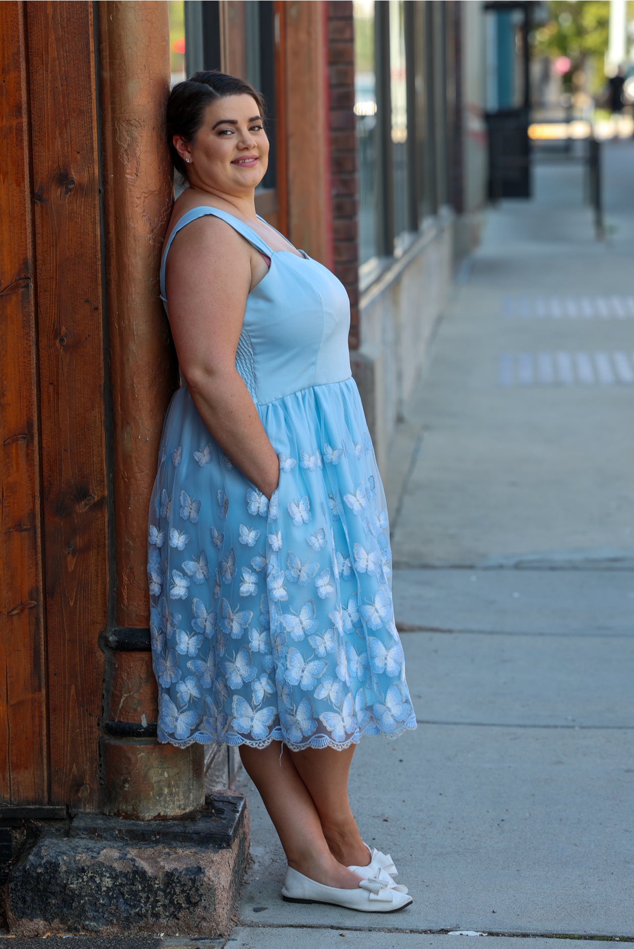 Featuring a classic sweetheart neckline, wide straps, embroidered tulle overlay, and pockets.